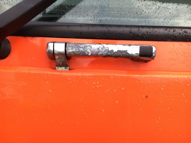 中古車で購入時から付いていたメッキのフロントパネルグリップ。