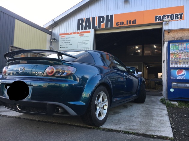 マツダRX-8が入庫です。 左右リアフェンダーの爪(耳)に発生しているサビを修理ご依頼いただきました。 また、爪(耳)の下部辺りにエアロパーツ(サイドステップ)取り付け失敗穴が空いているとの事なので、