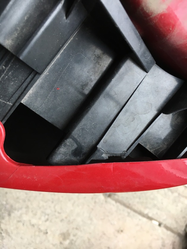 バンパーも割れてます。このバンパーの小さな割れが浮きを発生させるんですよね