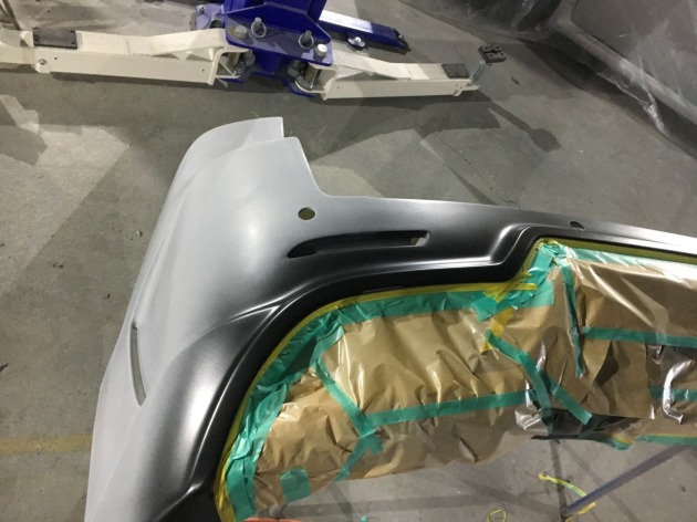 エアロリヤバンパーはソナーの穴とサイドスリットの穴あけ加工