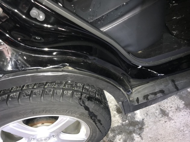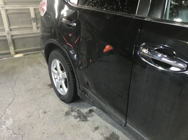 車対車の接触事故でまた事故車の入庫です。車体は激しい損傷でも修理で♪