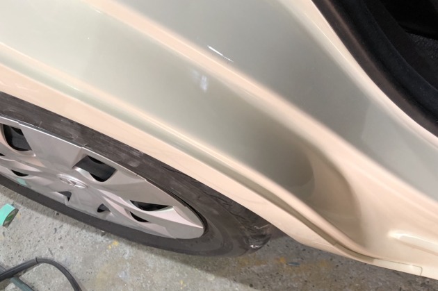 冬の間にリヤドアとリヤフェンダーぶつけて