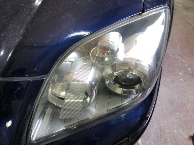 修理ついでにフロントヘッドライトの黄ばみ落としと