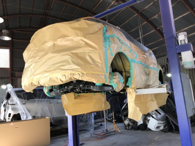 車体はぐるっと覆って車高調もしっかりと全部隠して段取りは完了!!