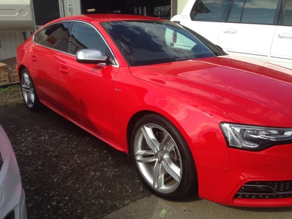 アウディS5 運転席ドアの傷と凹み板金修理で入庫!