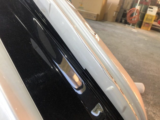 トヨタランドクルーザー200系のサイドステップエアロカバー修理ご依頼をいただきました。 底面についたパッと見は気づきにくい擦り傷なので、部分修理にて承りました。 『大したキズではないけど、綺麗に乗って