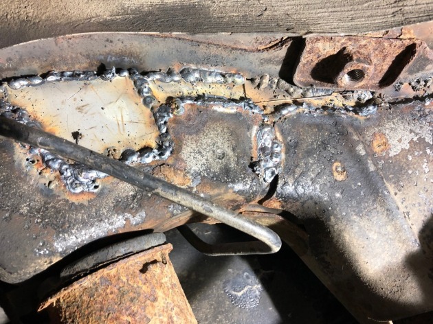 場所がリアフレームなので元より厚い鉄板で穴埋め修理。