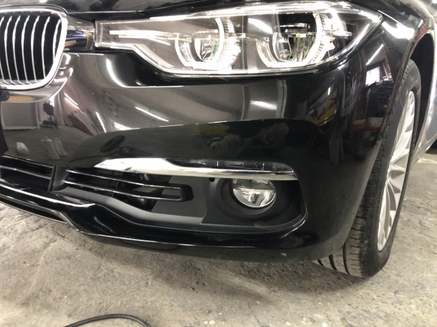 BMW320iワゴンの割れたアンダーグリル/フォグランプカバーを部品交換で修理!