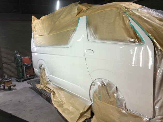 最後に、メイン作業の外装塗装に入ります。ハイエースの「側面パネルの塗装」は中々一苦労ですが、しかし!ここまで来れば完成まであと一息!完成まで一気に仕上げていきます。
