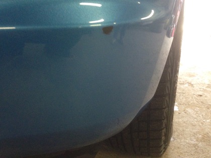 ホンダフィットのリアバンパー板金塗装修理ご依頼をいただきました。 ご事情をお聞きすると、、、リアバンパーの擦って損傷した箇所をDIY修理して乗っていたそうですが、今度こちらのお車をご実家から離れて住ん