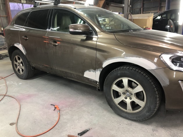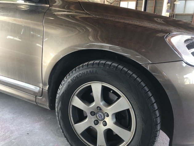 ボルボXC60 ボルボのSUV タイプですね 以前左リヤフェンダーをちょっとこすって そのままにしてましたが、 右リヤドアラストから右リヤフェンダーにかけて 少し酷めにぶつけてしまい 両側リヤフェンダ