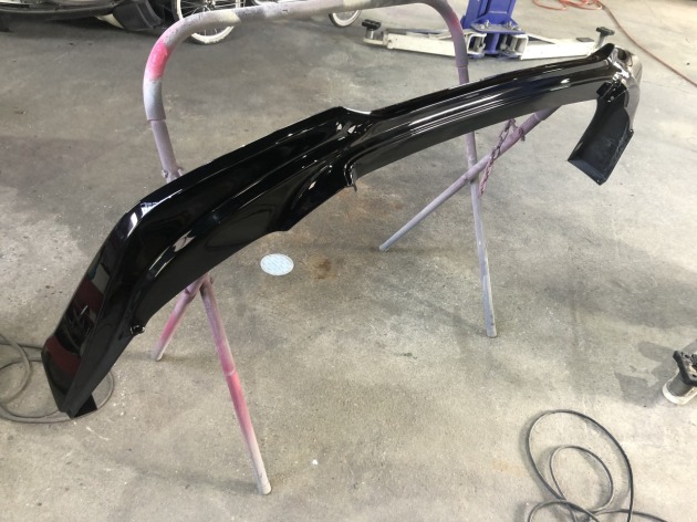 持ち込みのランサーエボリューションフロントスポイラーを艶あり黒に塗装!