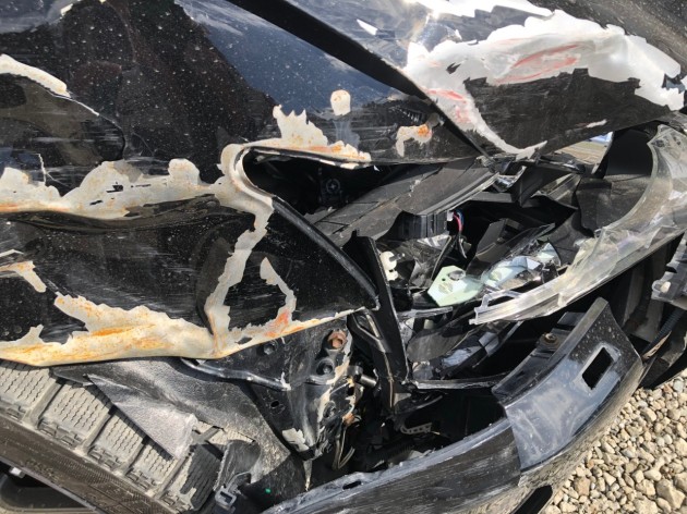 右前周り(ヘッドライト部分)がかなり壊れており、骨格まで損傷している模様です。
