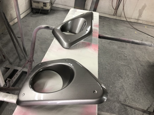 今回は、その色々ある違い内の一つ、フロントバンパーパーツの一部であるフォグランプカバー(ベゼル)が『シルバーなのが、なんか気に入らない』という事で、ボディ同色への色替え塗装ご依頼です。