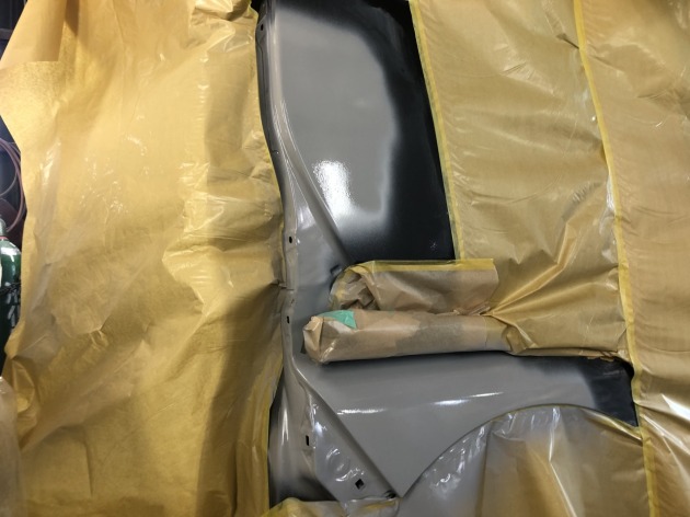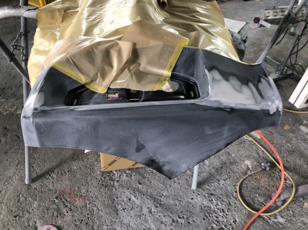そして、発注したバンパーブラケットが届いたら、リアバンパーを仮合わせして、潰れた所の出入りを確認しつつ整形して塗装します。