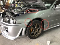 CV35スカイラインクーペ リアフェンダー縁の塗装剥がれを部分塗装修理