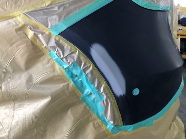 サフェーサー乾燥後、サフェーサーを研ぎ、足付けを行い、マスキングをして塗装します。