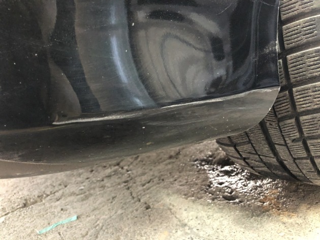 地面に埋め込まれているポールに接触してしまい、リアフェンダーが凹み、リアバンパーにガリ傷が付いてしまったそうです。