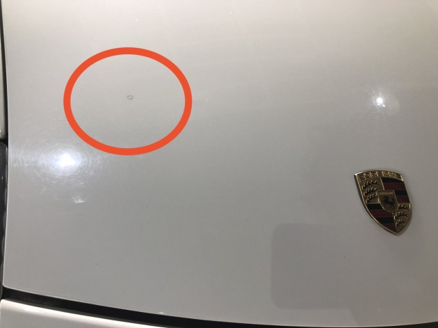 ポルシェカレラ4ボンネットフードの黒く汚れたタッチアップを綺麗に処理!