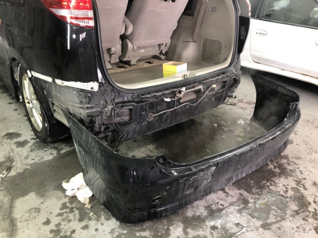 エスティマのリアバンパー割れ!塗装済み社外新品パーツに交換修理!