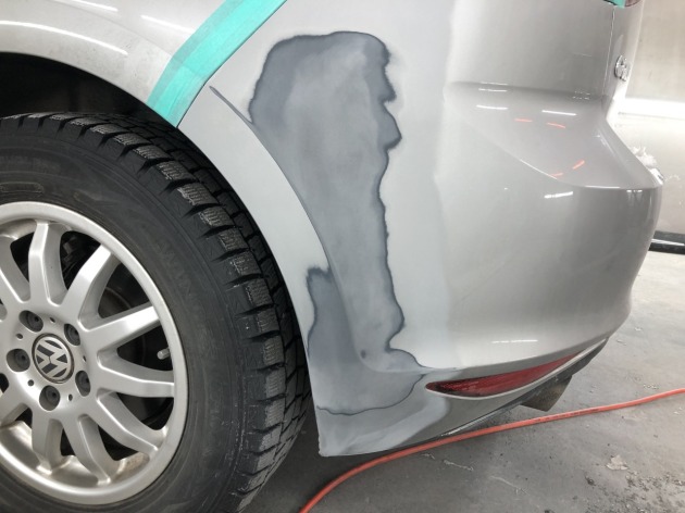 今回は修理費用を抑えるため、リアバンパーの取り外し作業をせずに、また、部分塗装にて作業していきました。