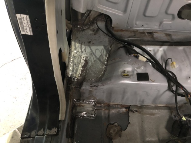 引き続き、フロアパネルの腐食・サビ穴を修理していきます。