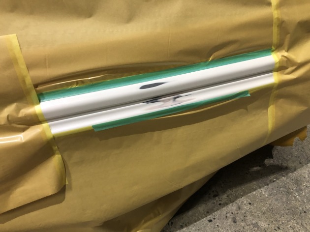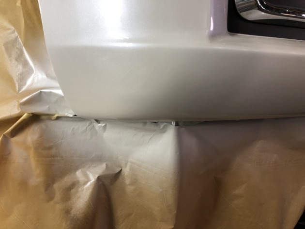 表面側からの割れ処理だけを施した後、部分塗装にて、リヤスカートの修理も完了です。