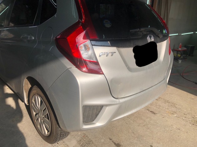 ホンダGKフィットのリアゲート凹み大/リアバンパー変形を自費修理