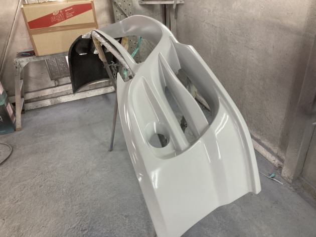 早速、フロントハーフスポイラーを取り外して、割れ/穴埋め修理作業開始です。