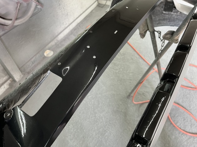 バンパー中央部(スピンドルグリルの奥側部分)にはエアロならではの補強が入っているので、目立たない黒で塗装しておきます。