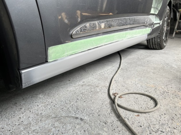 雪害でかなり凹んだシトロエンDS3のサイドステップを板金塗装