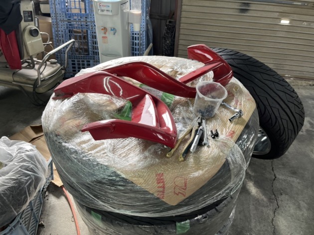 まずは、持ち込みいただいたエアロパーツの塗装作業です。