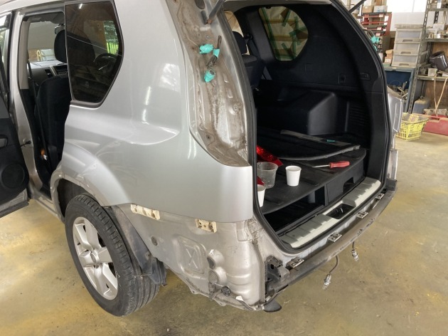 車体から前後バンパー/フロントグリル/ヘッドライト/テールランプ/リアゲートガーニッシュを外します。