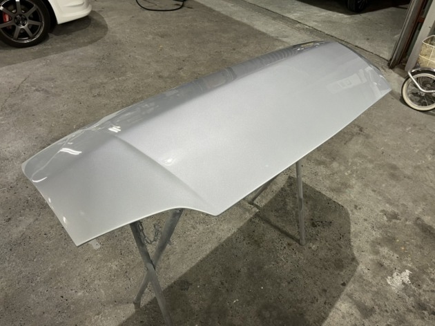 持ち込みのハイエース200用FRP製ボンネットフードを表面のみ塗装