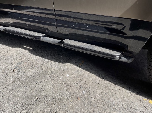 シルバー塗装されているパーツ部分(フロントバンパーのセンター部、ステップの踏み台部、リアバンパーのセンター部)を艶有ブラックにペイントカスタムご依頼いただきました。