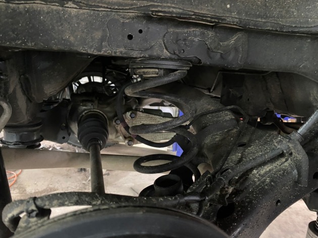ショックアブソーバーを取り外し終えたら、持ち込みのリフトアップスプリングへ交換します。