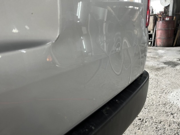 200系ハイエースは微妙な場所ばかりが凹むんですよね...今回もナンバー周りのプレスラインに折れ曲がっているような複雑な凹みが複数できています。