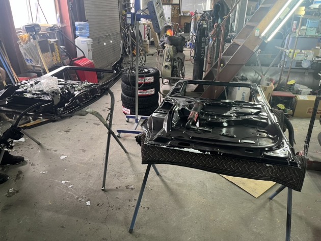 裏塗りの塗料を乾かしている間に、車体から凹んだ左スライドドアを取り外します。