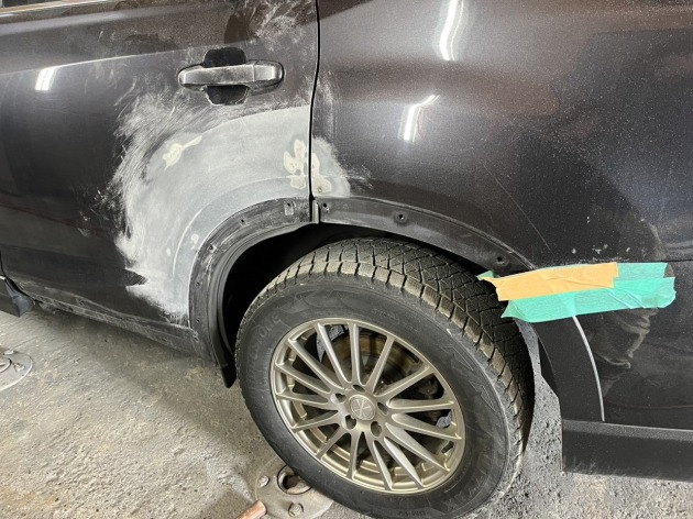 フォレスターの左側面ボディ板金塗装&樹脂パーツ新品交換修理