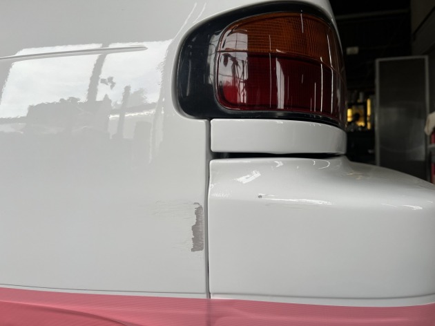 純白オールペイント13シルビアの左リア周りに付いた傷を部分修理