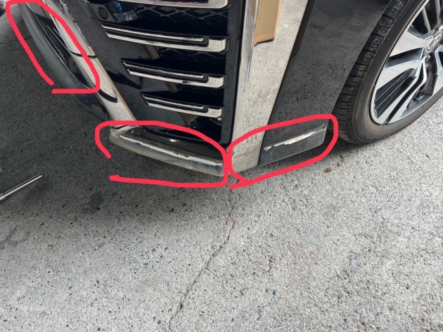 装着しているTRDフロントスポイラーが割れて、割れた箇所が大きく欠損してしまったようで、取り外し作業ご依頼をいただきました。