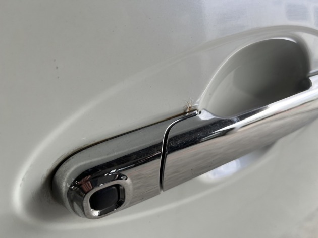 それと、左スライドドアのドアノブ根本に小さな錆びが発生しています。