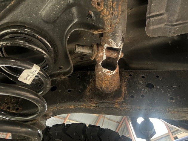 78プラドの車検点検で見つかったリア下回りに空いたサビ穴を修理ご依頼