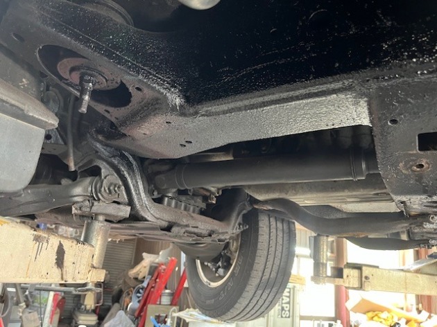 サビ修理作業箇所は、左フロントタイヤの裏側付近です。