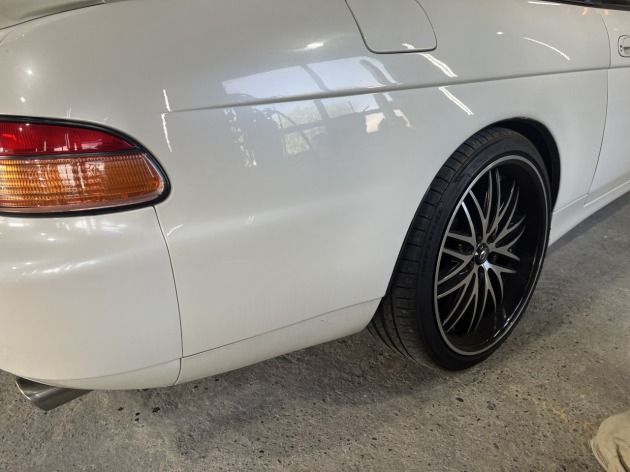 3.0ノンターボから乗り換えて数十年維持してきたお車のようで、『右リアフェンダーアーチの錆びが酷くなってきたので修理したい』という事で錆び修理ご依頼をいただきました。