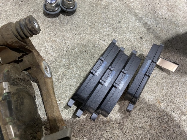 ブレーキを点検すると、フロントは問題ありませんでしたが、リアのブレーキパッドが減っていましたので新品に交換します。