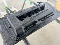 ▼無塗装樹脂パーツやバンパー・グリルなどをラプターライナーで塗装