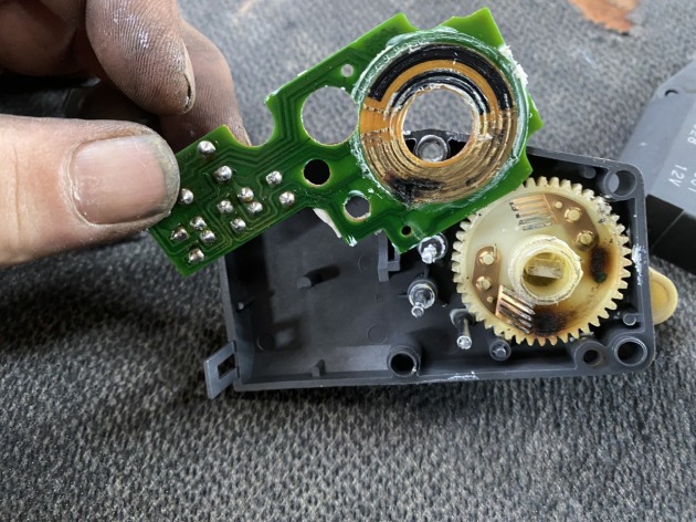 エアミクスチャーを取り外して調べてみると、基盤が焼けてました。