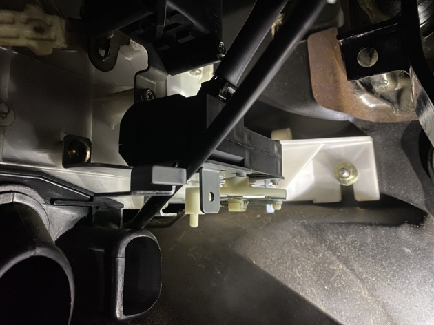 コンプレッサーは作動しているので色々点検してみると、温度調整するエアミックスアクチュエーター(エアミクスチャー)が動いてませんでした。