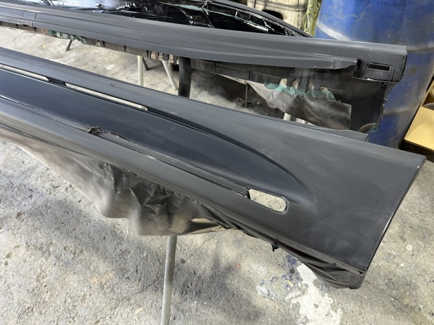 サイドステップとリアバンパーの素地部分をシボ取りしてボディ同色塗装ご依頼を承りました。